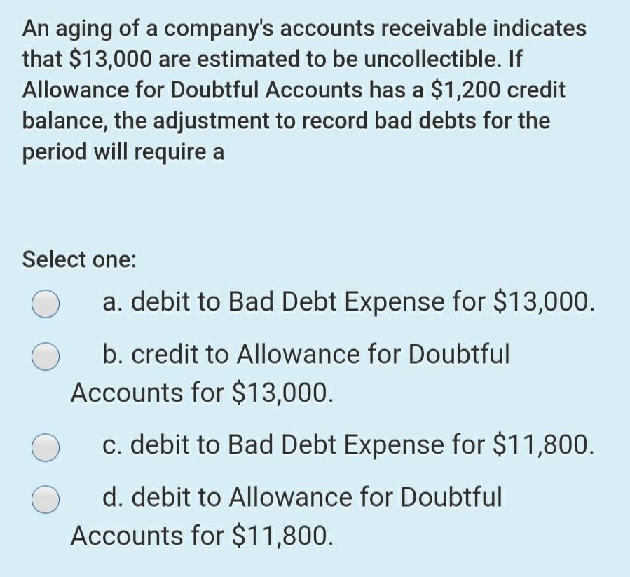 An Aging of a Company's Accounts Receivable Indicates That